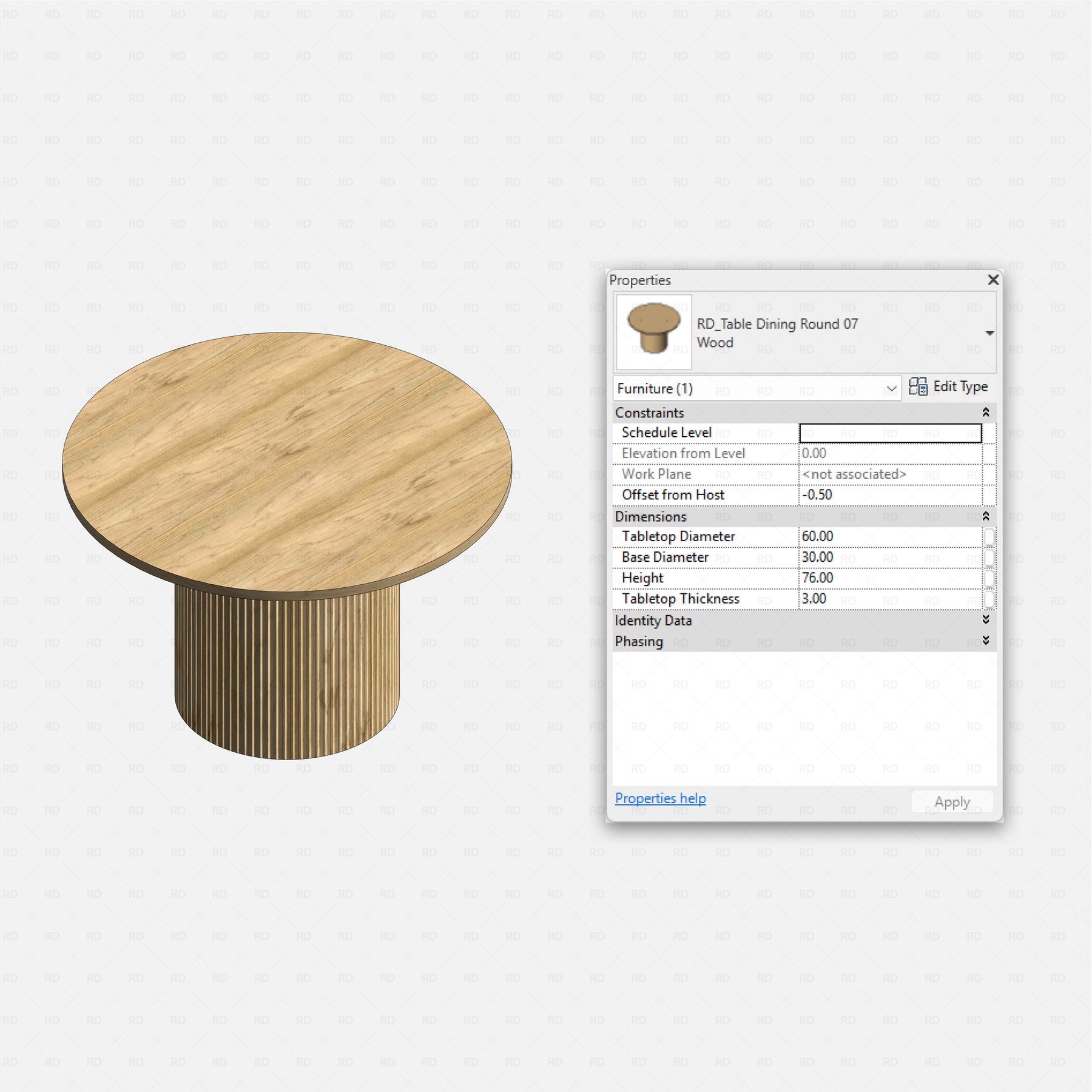Download a pack of 30 Revit Dining Table Families