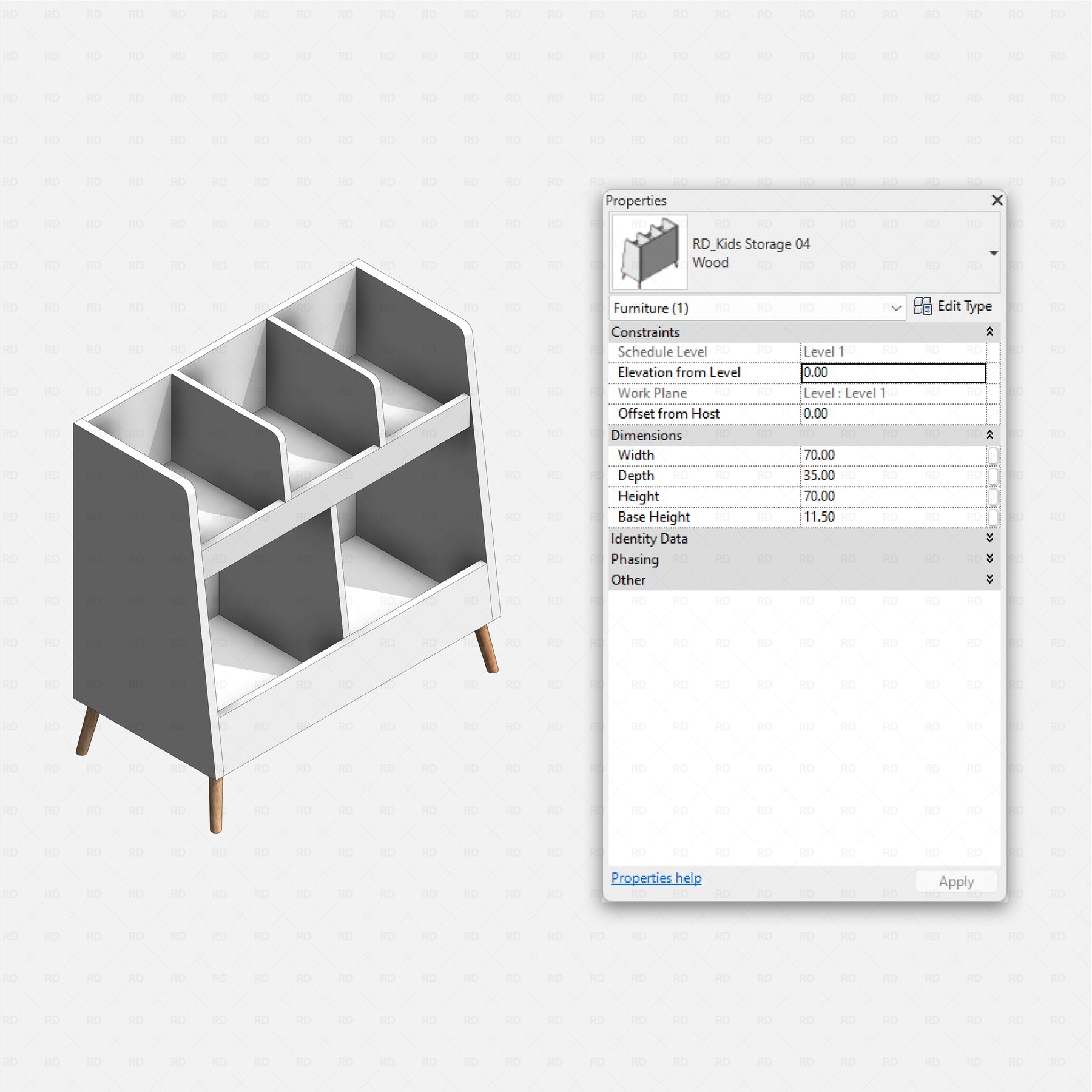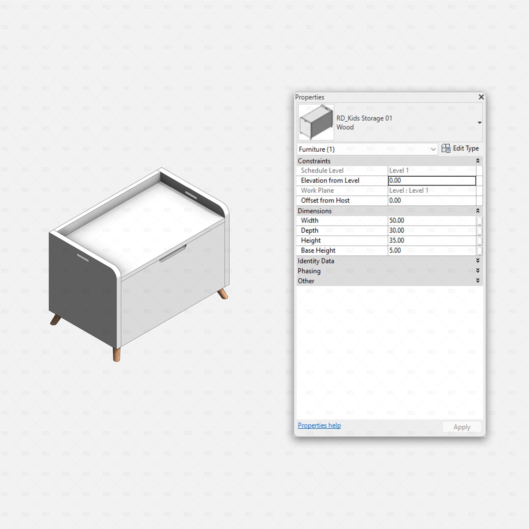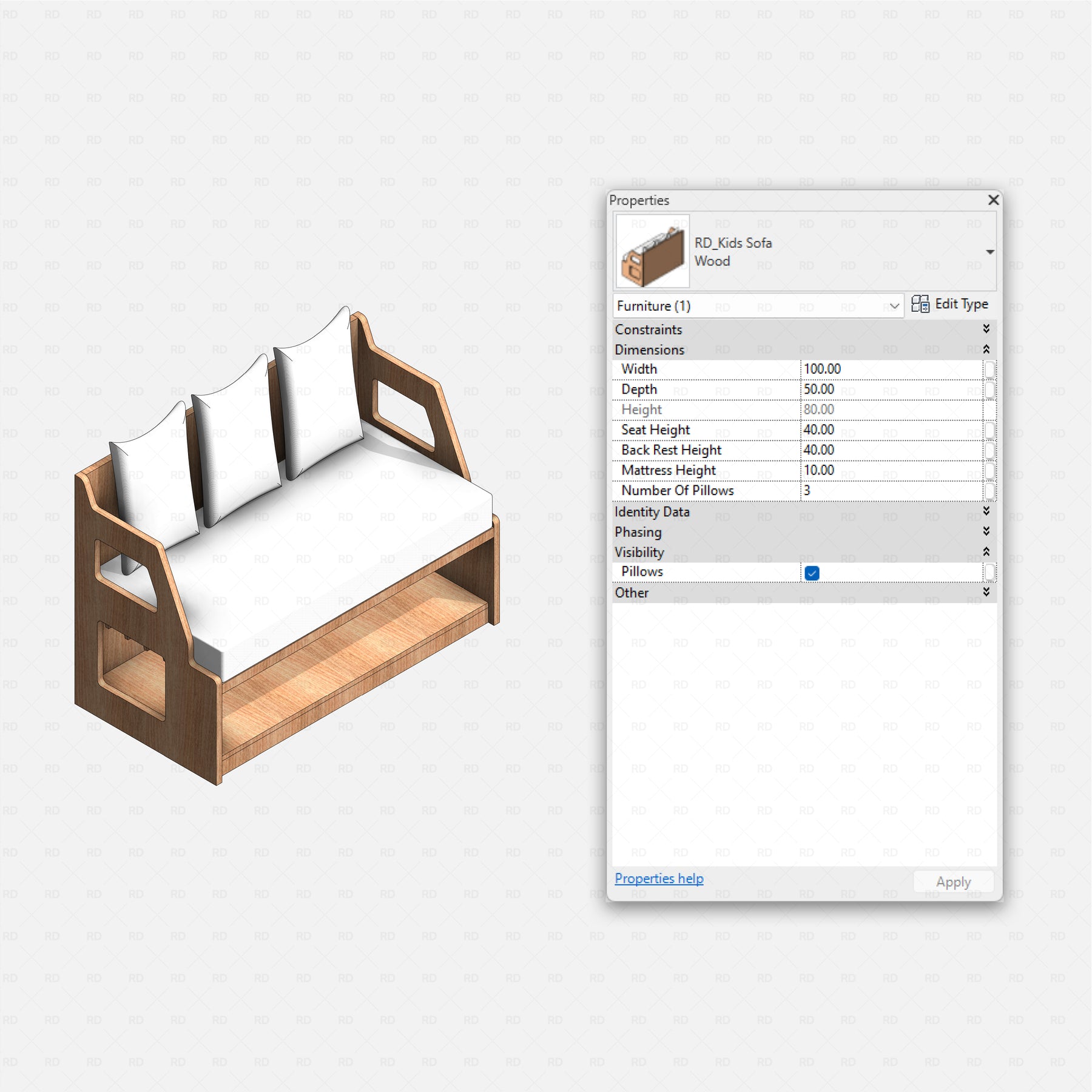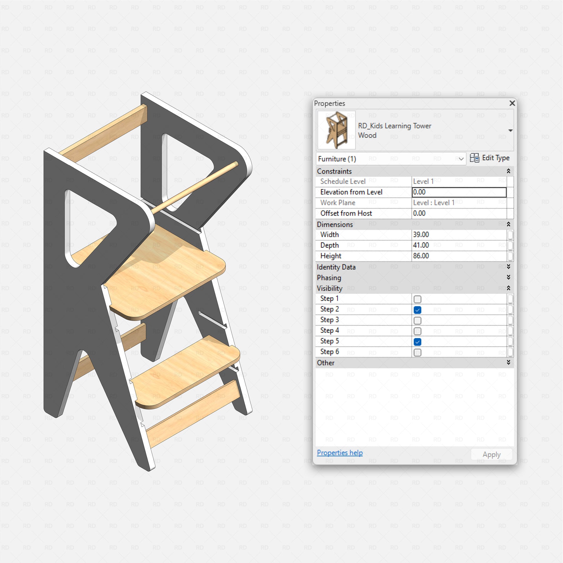 Every family in the Revit Kids Bedroom pack is built to be smart and adaptable. Easily adjust key dimensions, proportions, and materials to fit different room sizes and layouts. Many items include visibility controls for optional parts and accessories, letting you quickly switch between variations without loading extra families - perfect for fast iterations, clean documentation, and flexible kids bedroom designs.