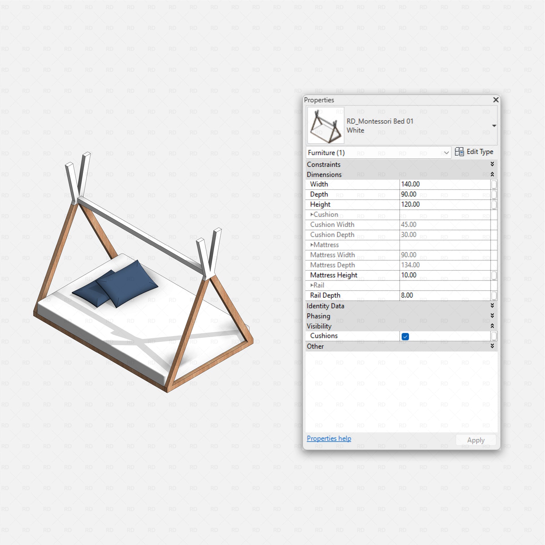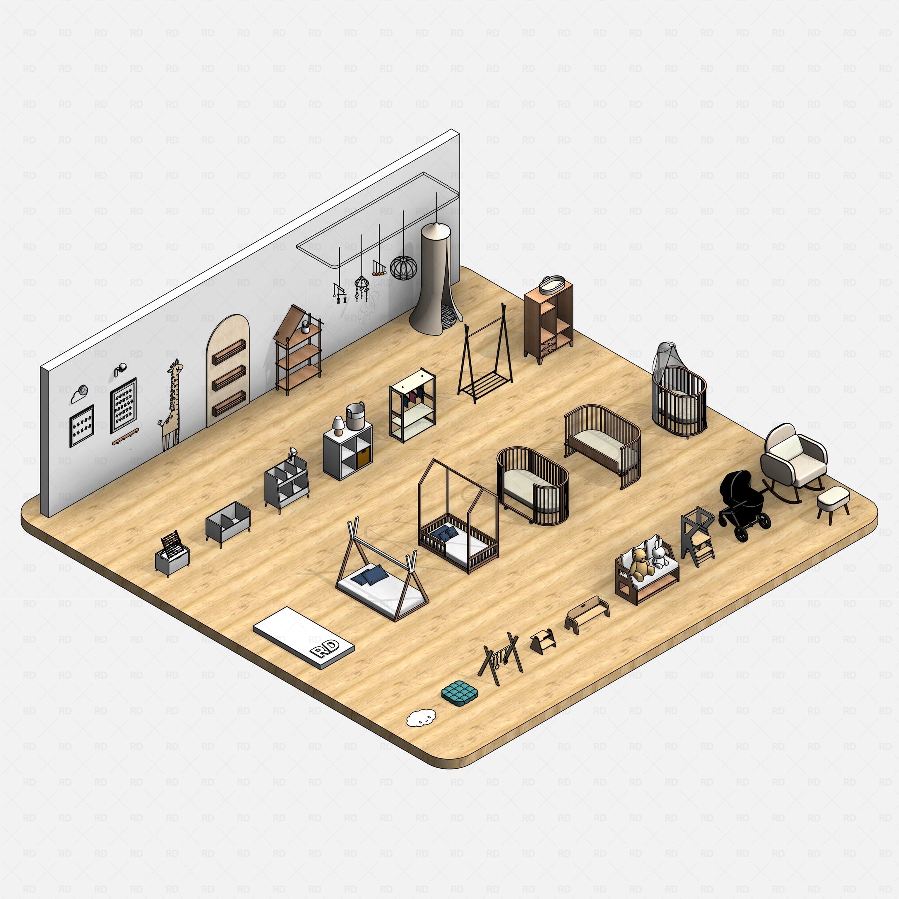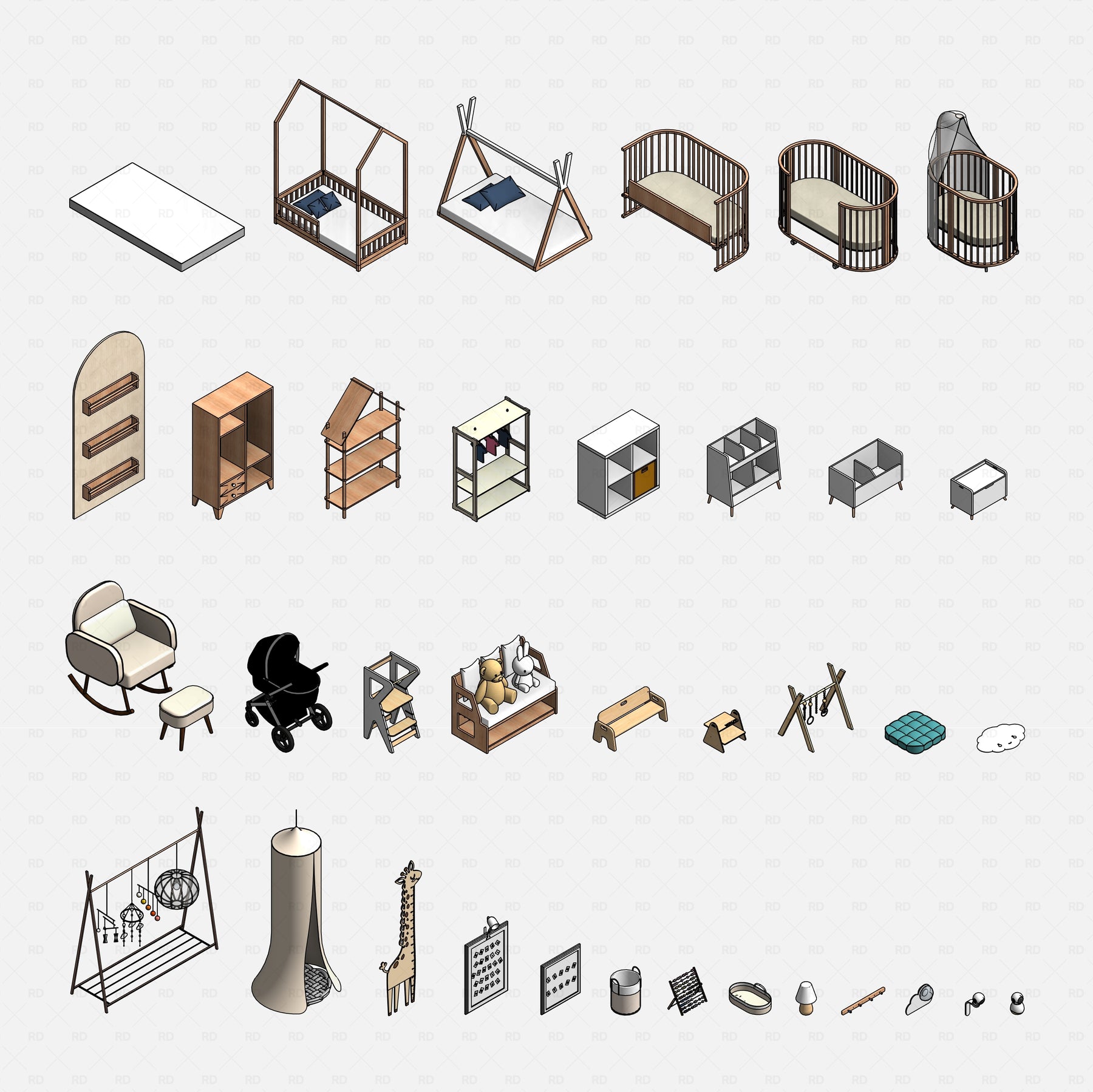 Design warm, functional, and child-centered interiors with Revit Kids Bedroom (Inspired by Montessori) - a curated collection of 46 lightweight, BIM-ready families created for modern kids’ rooms and nursery spaces. The pack includes essential furniture and accessories such as beds, wardrobes, bassinets, learning towers, baby monitors, baby mobiles, kids benches, strollers, nursing chairs, stuffed toys, and more to help you build complete, realistic bedroom scenes.