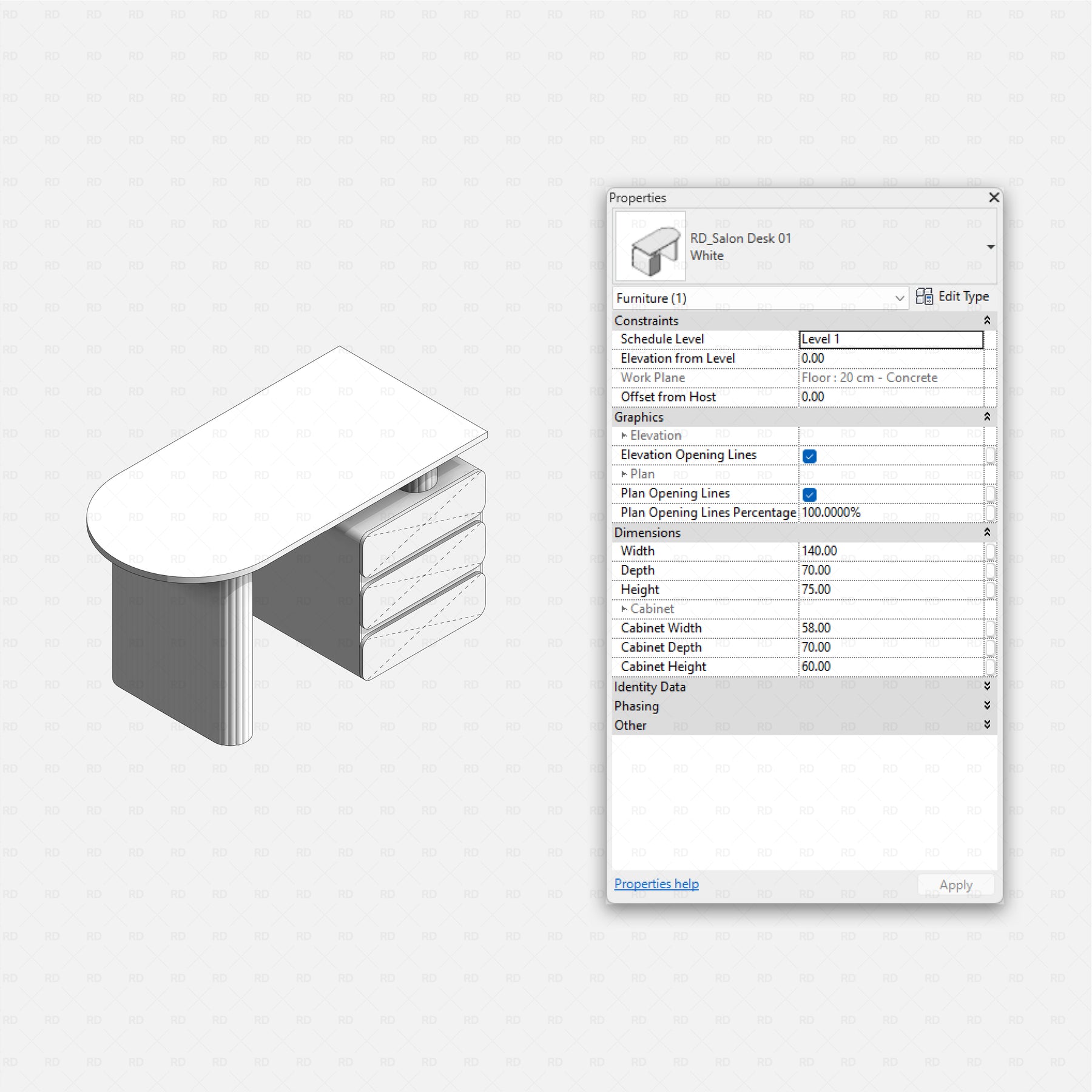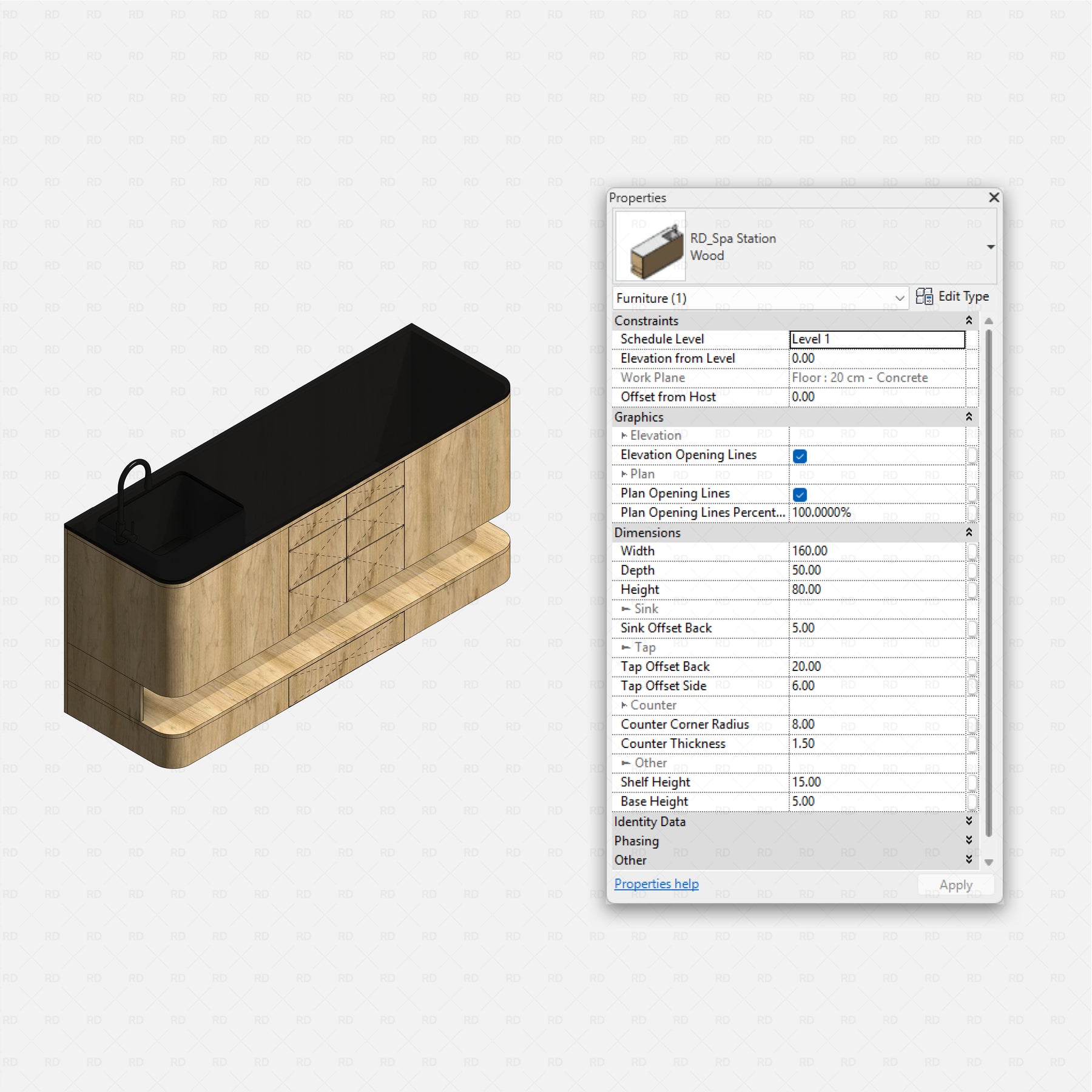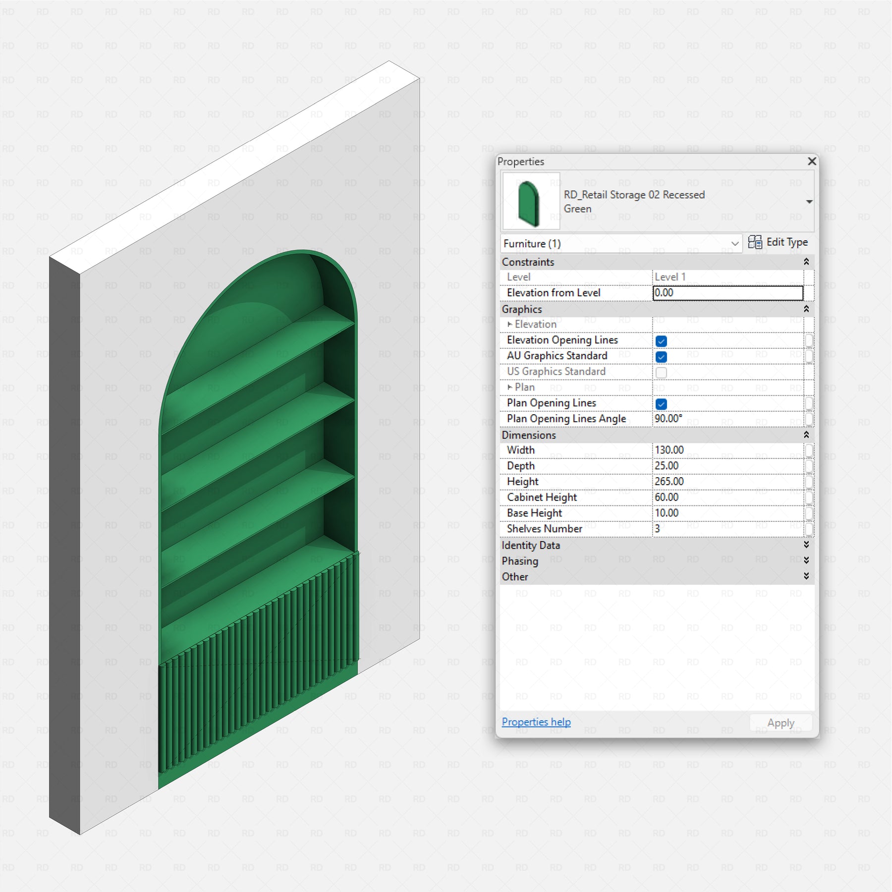 Created with architects and interior designers in mind, the main dimension parameters are instance parameters, allowing quick and easy adjustments directly inside the project.