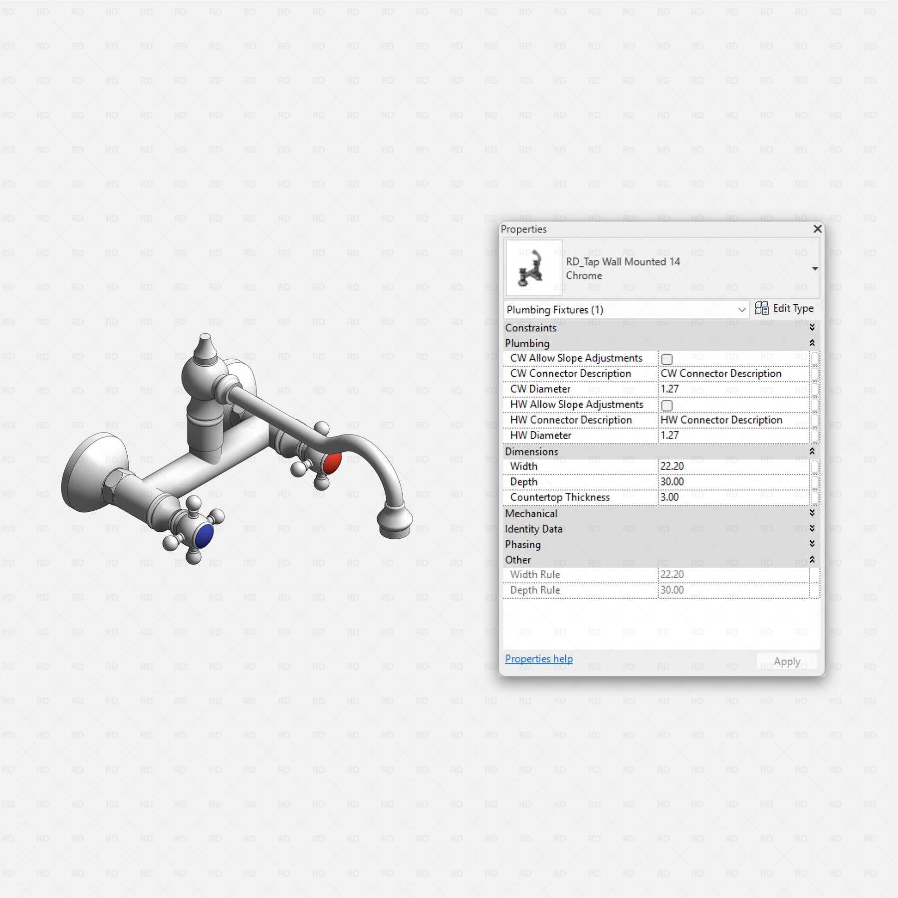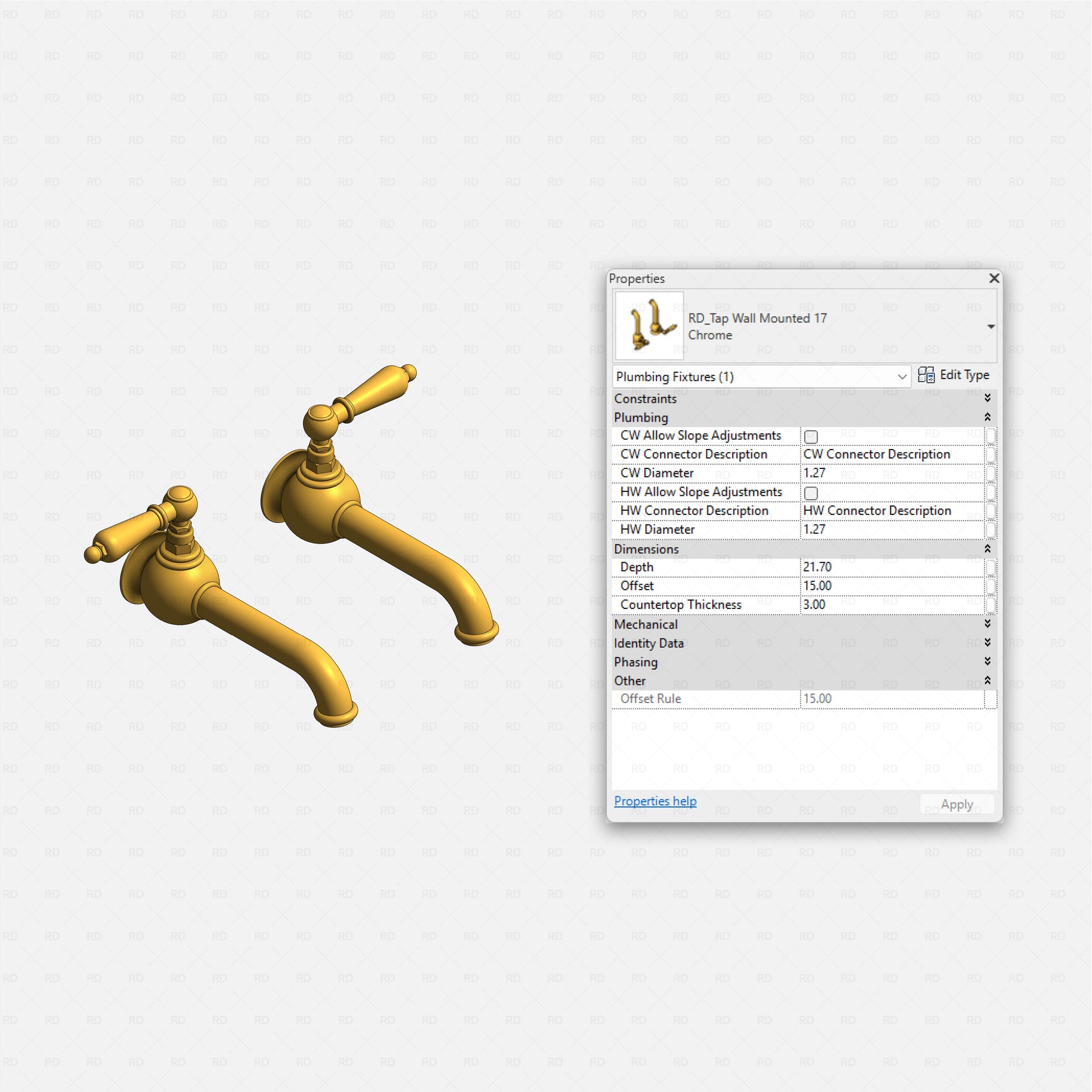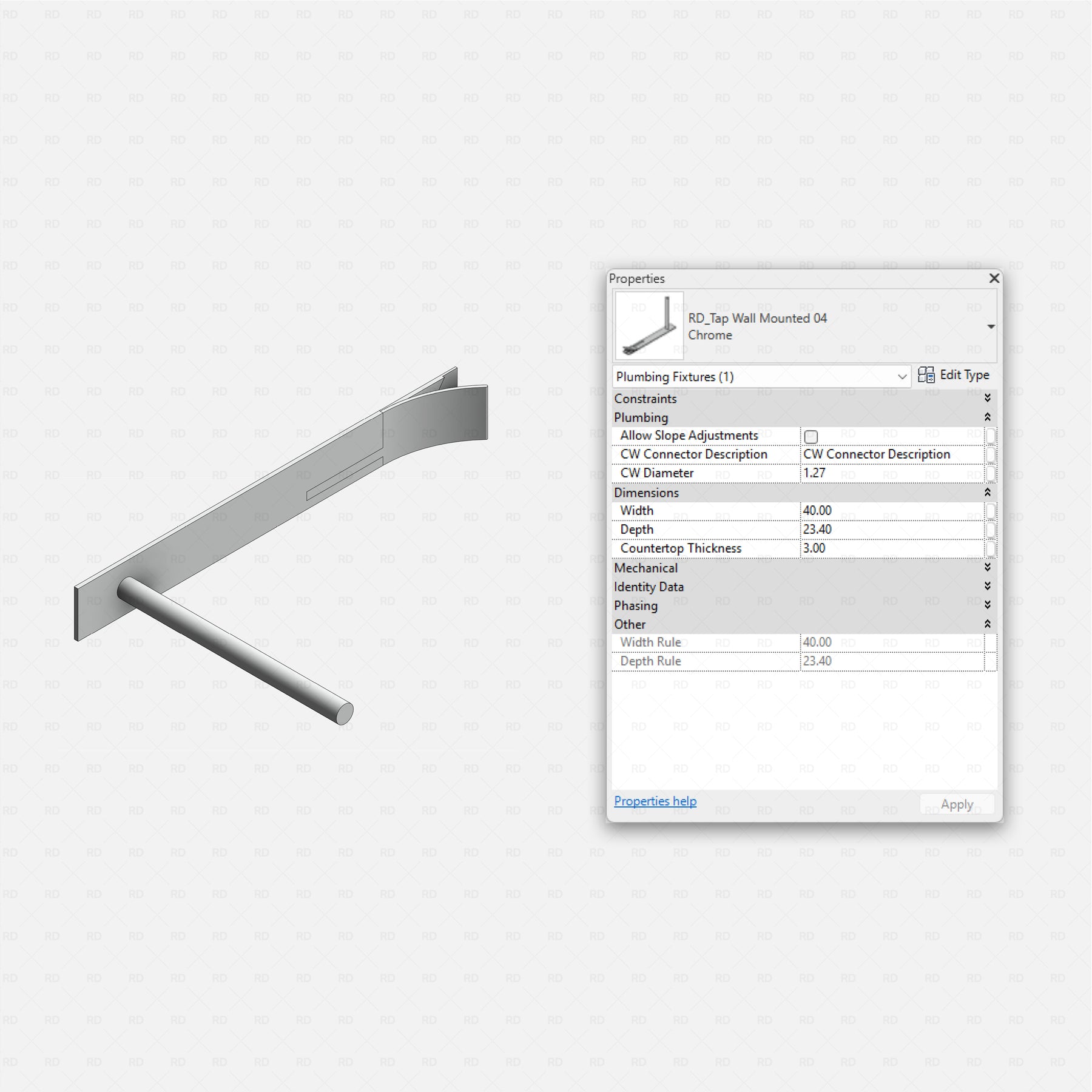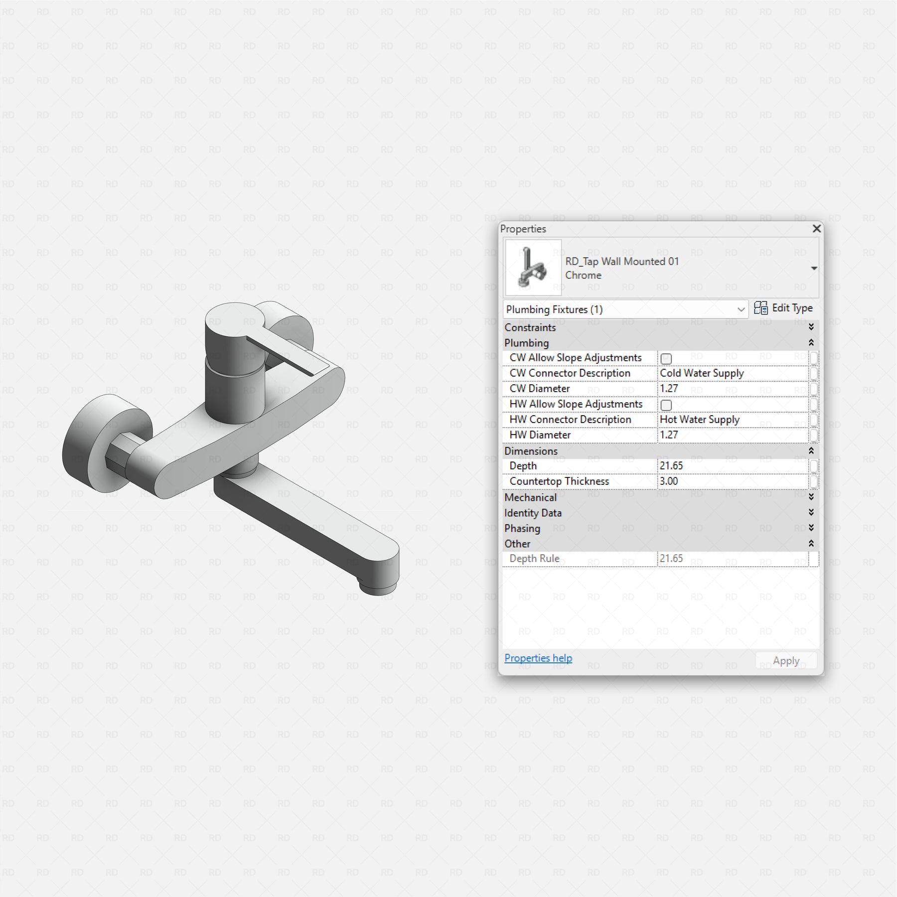Each wall-mounted tap is fully parametric - letting you fine-tune dimensions with ease. Whether you’re refining bathroom details or adjusting for real-world fixtures, these families adapt seamlessly to your project’s exact specifications.