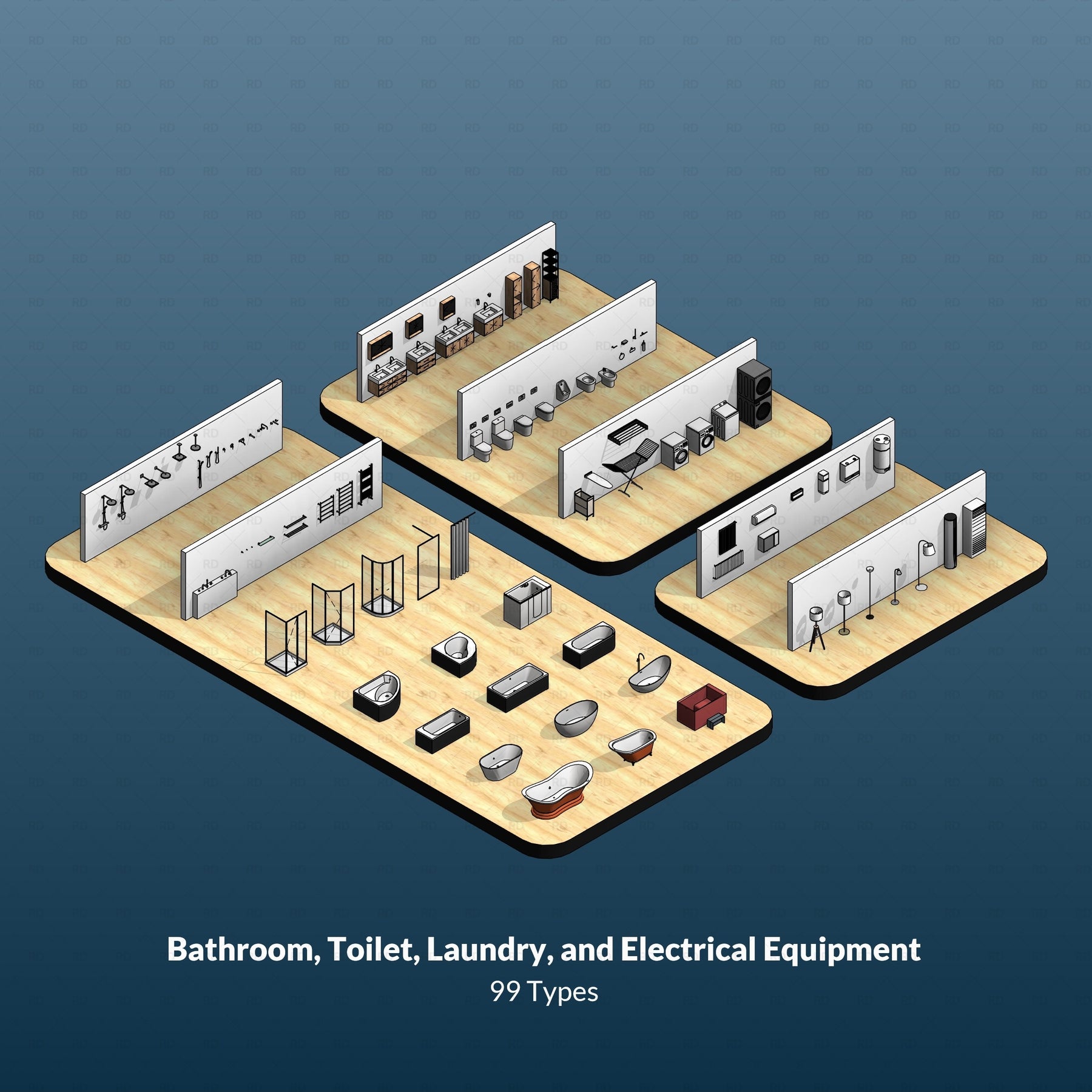 - Sanitary: Toilets, Showers, Bathtubs, Vanities.