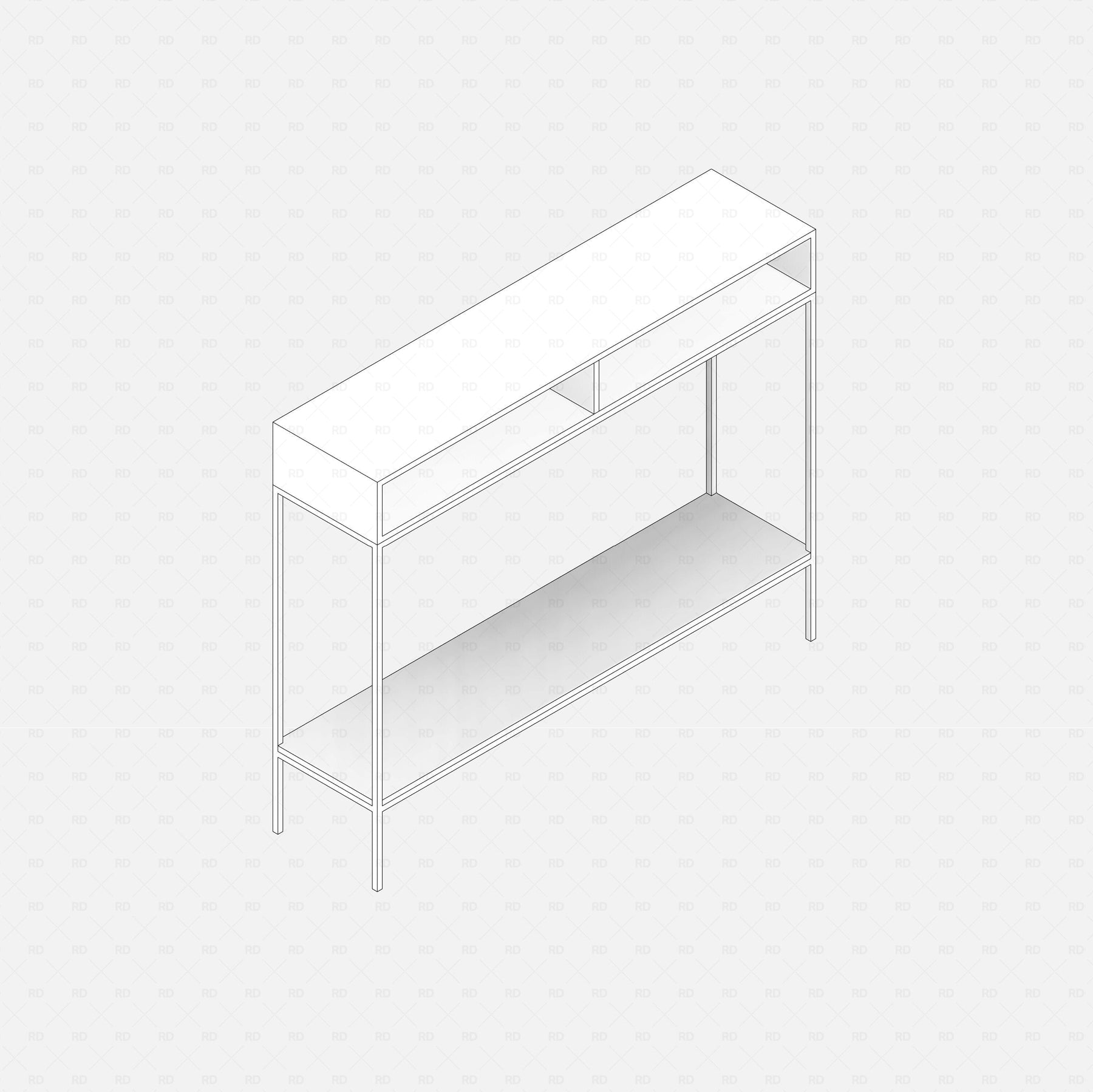revit wood console table RD Studio BIM blocks rfa slim metal-frame console with two drawers and shelf