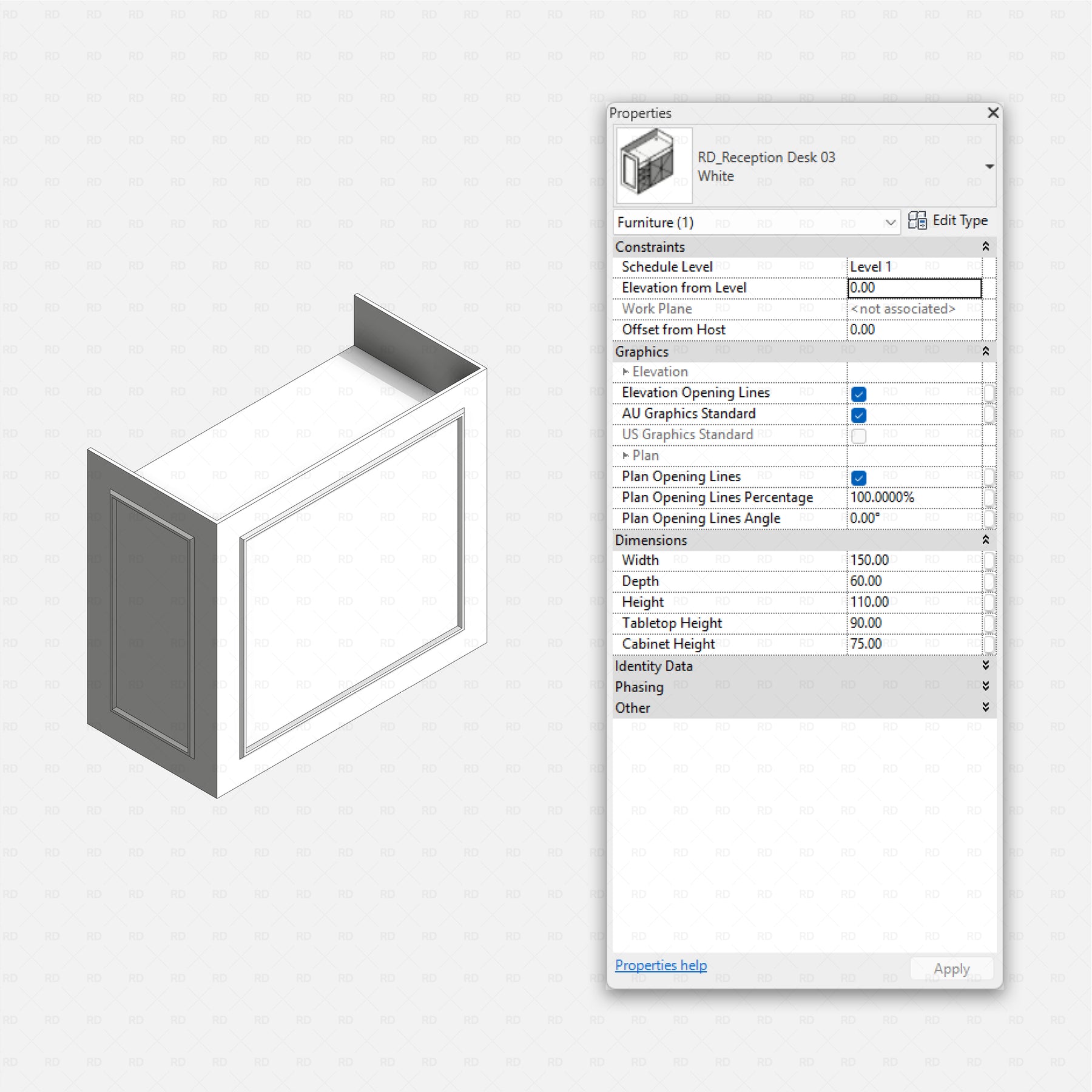 • Wir haben die Revit Barbershop Familien speziell für Innenarchitekten entwickelt: Schlüsseldimensionen sind Exemplarparameter, die eine schnelle und einfache Änderung der Familien ermöglichen.