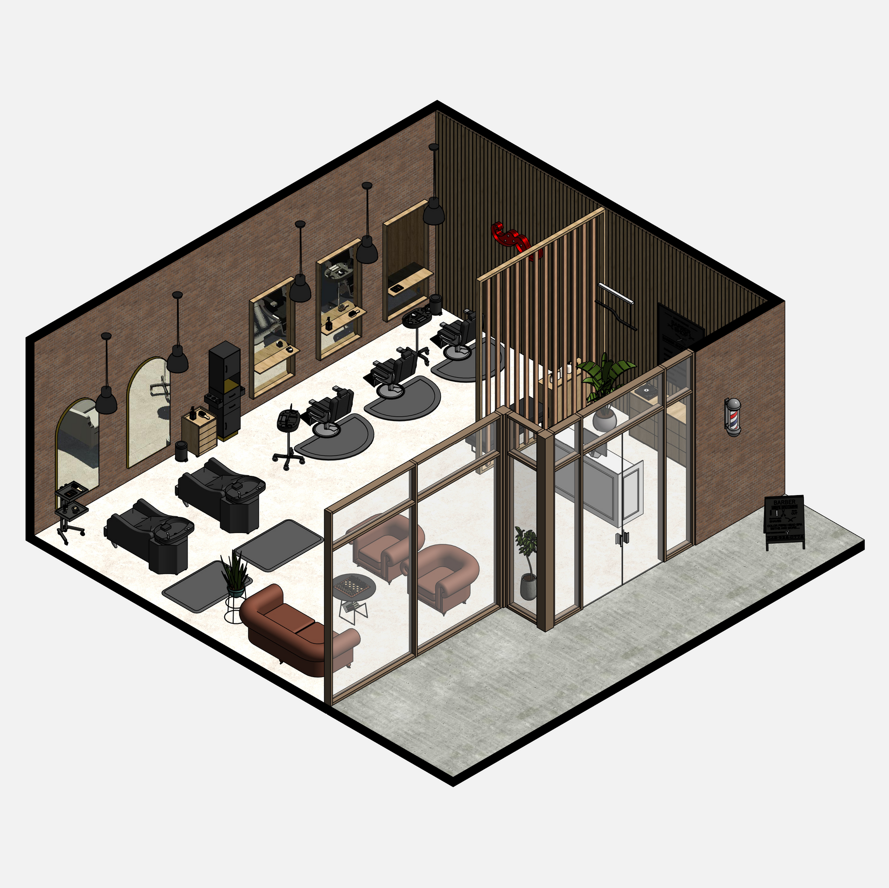 Perfekt für Revit Barbershop-Projekte, Pflegestudios, Herrensalons, Einzelhandelsfriseurgeschäfte, Lifestyle-Interieurs und Gastronomieumgebungen.
