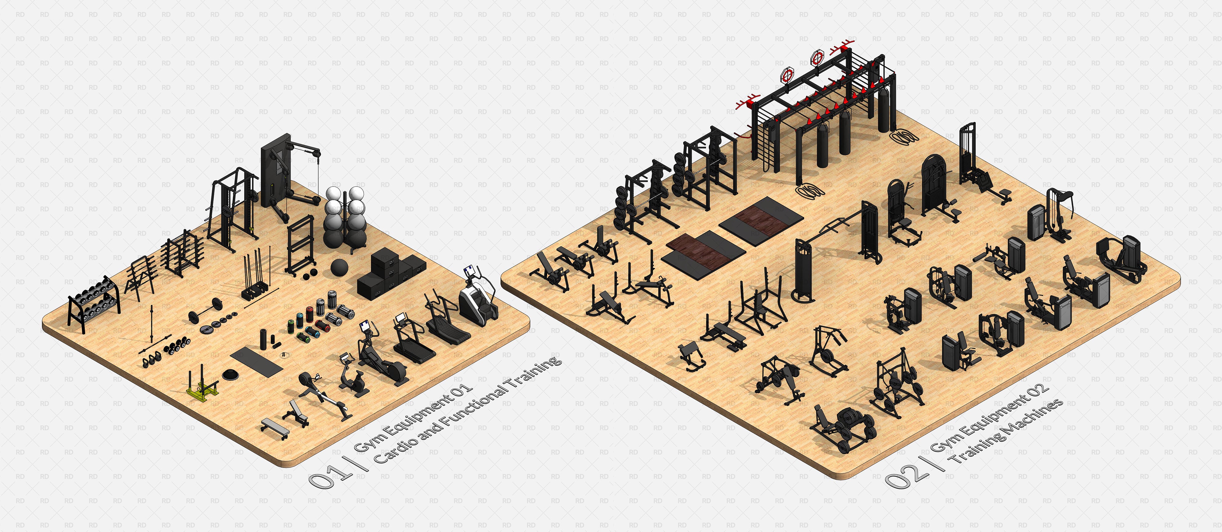 Revit Gym Equipment [Pack 01] Cardio- und Funktionstrainingsfamilien für Revit