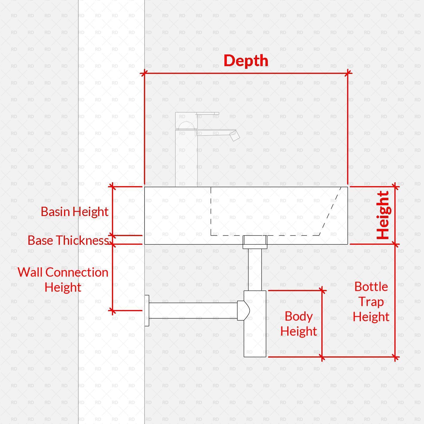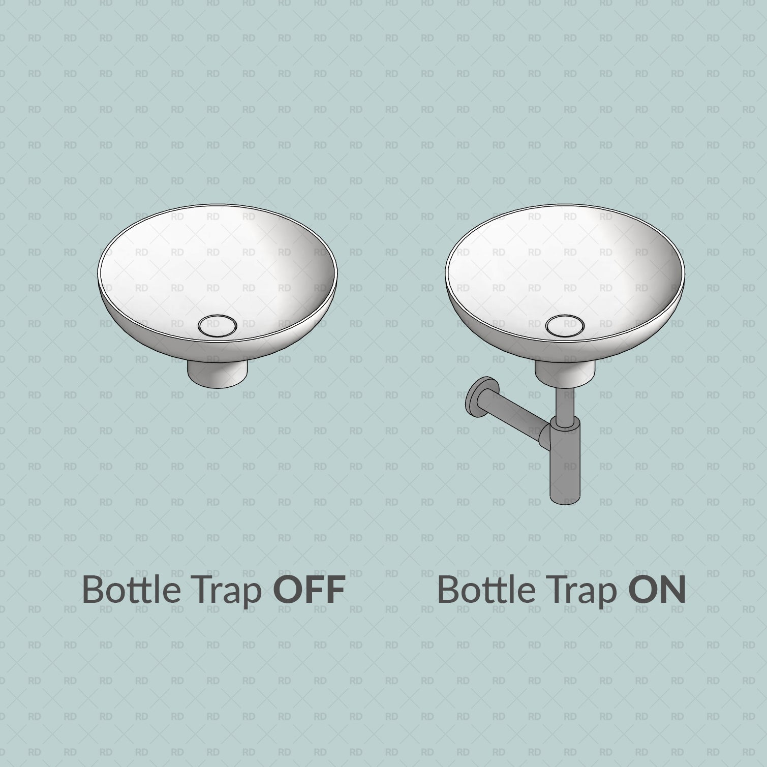All Revit Bathroom Sinks have a built-in Bottle Trap. The bottle trap is a nested Family that can be turned on or off and has the following instance parameters: