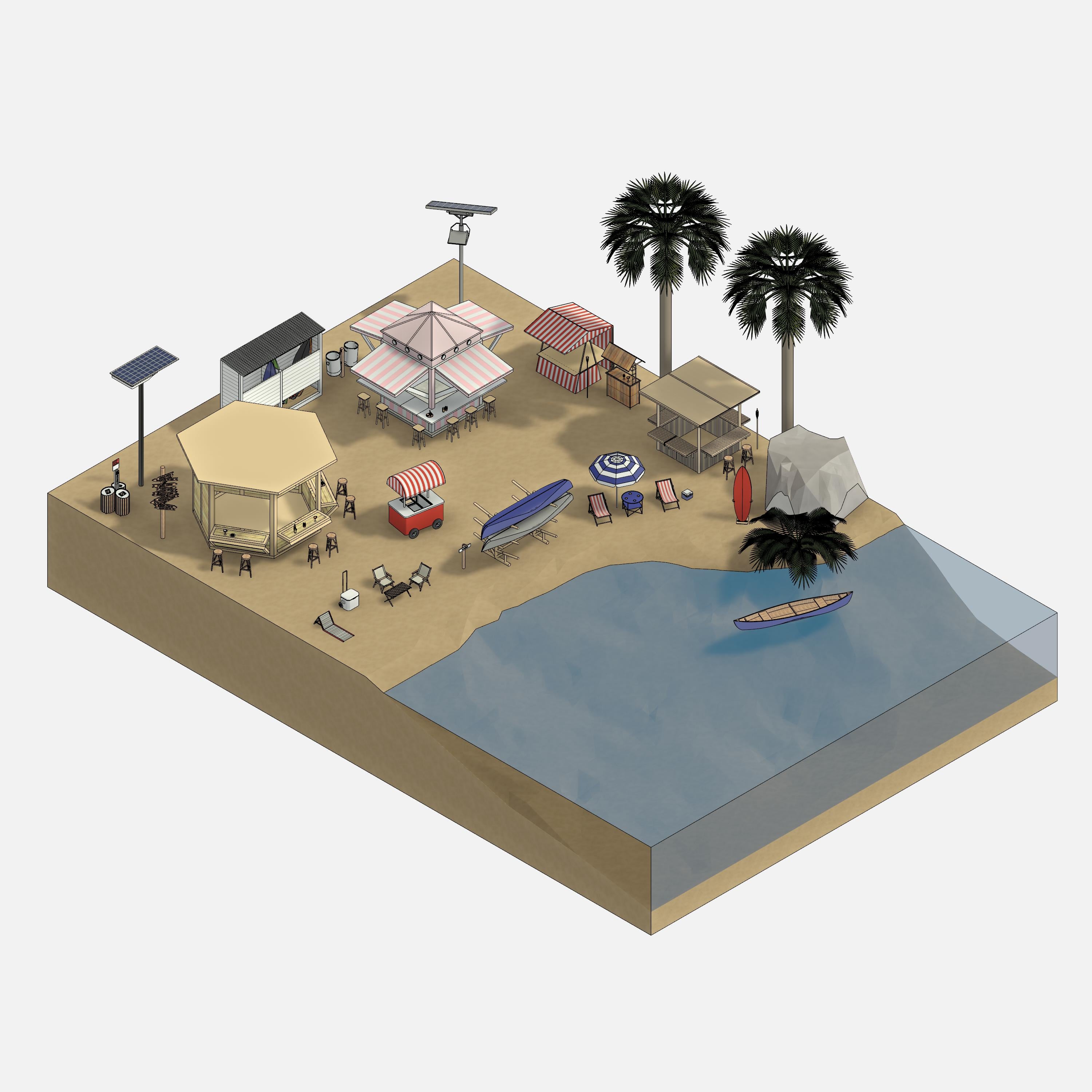Each family is designed for seamless placement, quick customization, and lightweight performance in large-scale Revit projects. Whether you're planning a lively boardwalk, a relaxed beach lounge, or a scenic picnic area, this pack provides the tools to visualize and execute your design with precision.